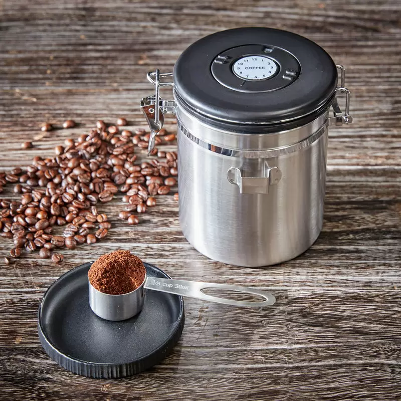 Halten Sie Kaffeebohnen oder frisch gemahlenen Kaffee länger frisch. Das Spezialventil in der Dose leitet CO2