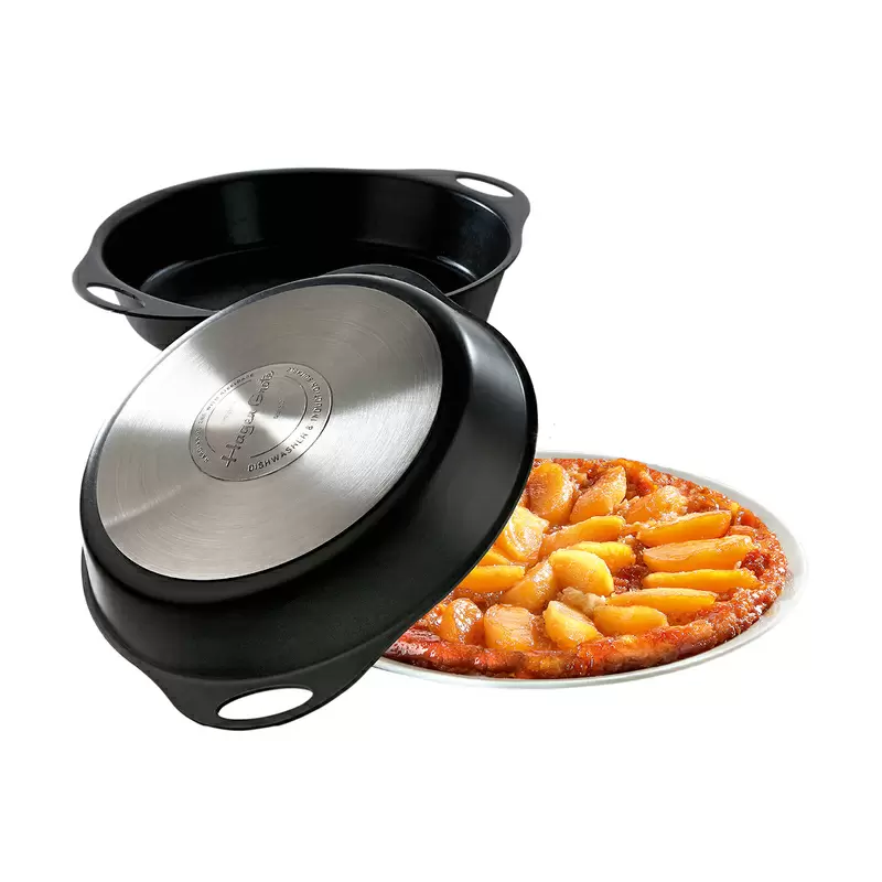 In dieser Backform gelingt schnell und einfach die köstliche, von den backenden Schwestern Tatin im französischen Örtchen Lamotte-Beuvron erfundene Apfeltarte. Wir fertigen die Form nach unseren hohen Standards mit besonderem Anspruch an Funktionalität. Auch als vollwertige Brat- und Servierpfanne auf dem Herd und im Ofen verwendbar.