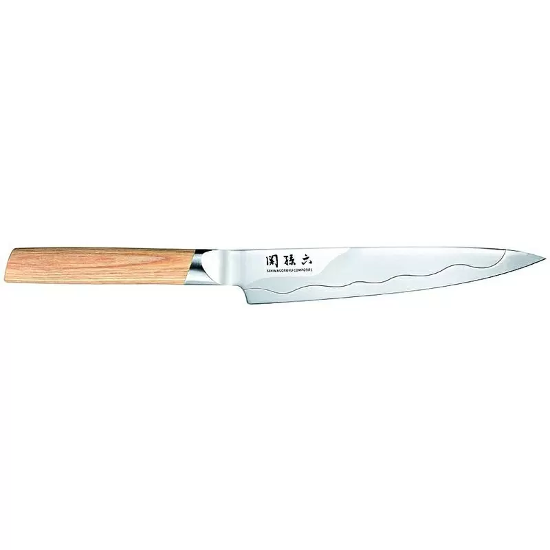 Mit der Seki Magoroku Composite Serie erschafft die japanische Traditionsschmiede KAI ein zeitgemäßes Design, das Dynamik und Leichtigkeit vermittelt. Innovativ ist auch das Herstellungsverfahren, das vom Flugzeugbau bekannt ist. Die Composite-Technik verbindet zwei Stahlsorten zu einer einzigartigen Klinge und gibt der Messerserie ihren Namen. Die Schneide wird mit extra hartem VG-MAX-Stahl (61±1 HRC) geschmiedet und der Klingenrücken mit SUS420J2 Stahl. Anschließend werden beide Stahlsorten mithilfe einer speziellen Kupferlötung zusammengesetzt. Das Ergebnis ist eine ausgesprochen hohe Elastizität, Stabilität und dauerhafte Schärfe der Klinge. Einzigartig ist auch das daraus entstehende Design. Denn die zarte durchlaufende Kupferlinie bleibt als kontrastreiches Detail sichtbar. Die Form des Officemessers wurde ursprünglich für die Armee entwickelt. Mit seiner kurzen Klinge von 9 cm ist es heute ein unverzichtbarer Küchenhelfer. Ideal ist das Seki Magoroku Composite Messer zum Schälen, für kleine Schneidearbeiten und zum Dekorieren von Speisen. Ein perfektes Zusammenspiel mit der Klinge bildet der Griff aus hellem Pakka-Holz, der dem Messer pure Ästhetik verleiht. Er ist für Links- und Rechtshänder geeignet und ermöglicht präzises, ermüdungsfreies Arbeiten. Die KAI Seki Magoroku Composite Serie wurde mit dem Red Dot Design Award 2013 ausgezeichnet. | ZUM PRODUKT – HIER KLICKEN |