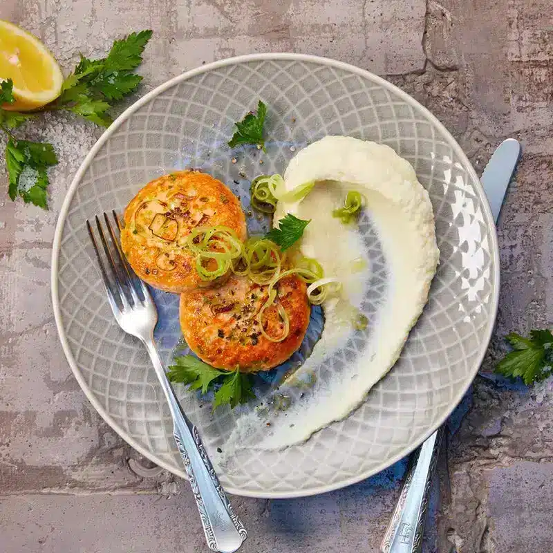 Erleben Sie eine neue Geschmacksrichtung mit unseren leckeren Low Carb Lachsküchlein auf Sellerie-Mascarpone-Püree. Die Kombination aus dem saftigen Lachs und dem cremigen Püree aus Sellerie und Mascarpone wird Sie begeistern. Die Zubereitung ist einfach und die Zutaten sind frisch und gesund. Überzeugen Sie sich selbst und genießen Sie ein besonderes Dinner mit Freunden oder Familie. Probieren Sie es jetzt aus! | ZUM REZEPT – HIER KLICKEN |