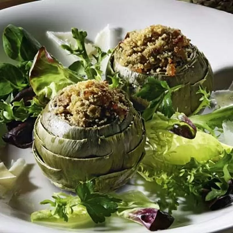 Genießen Sie unsere würzigen, gefüllten Artischocken mit Pancetta auf einem bunten Blattsalat! Für diese köstliche Vorspeise wird eine Füllung aus Pancetta, Zwiebeln, Knoblauch, Weißbrot, Petersilie und Pecorino zubereitet, in frische Artischocken gefüllt und gebacken. Dazu gibt es einen erfrischenden Blattsalat mit verschiedenen bunten Sorten, der mit Zitronensaft, Zucker, Salz, Pfeffer, Dijon-Senf, Knoblauch und Olivenöl angemacht wird. Probieren Sie es aus und lassen Sie sich von dieser köstlichen Kombination aus würzigem Pancetta und frischem Salat verführen! | ZUM REZEPT – HIER KLICKEN |