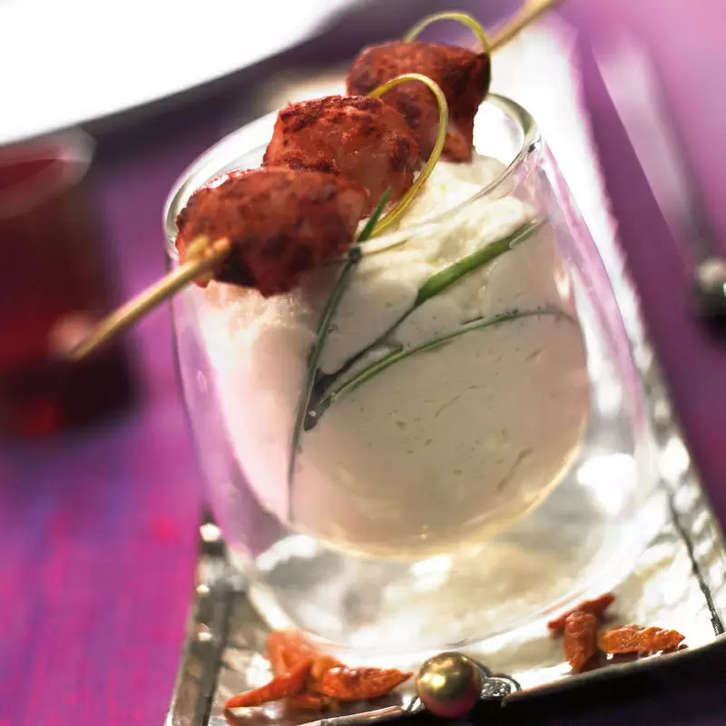Entdecken Sie unsere leckere Selleriemousse mit Tandoorispießen – ein besonderes, aromatisches Gericht, das die Geschmacksknospen verwöhnt! Die Selleriemousse wird aus frischer Sellerieknolle, Schlagsahne, Gewürzen und Hühnerbrühe zubereitet. Die Tandoorispieße bestehen aus zartem Geflügelbrustfleisch, das mit Tandooripaste (oder Pulver) mariniert und anschließend im Backofen gebacken wird. Serviert wird das Gericht mit griechischem Joghurt und frischer Petersilie. Probieren Sie jetzt unsere Selleriemousse mit Tandoorispießen – ein wahrer Genuss für den Gaumen! | ZUM REZEPT – HIER KLICKEN |