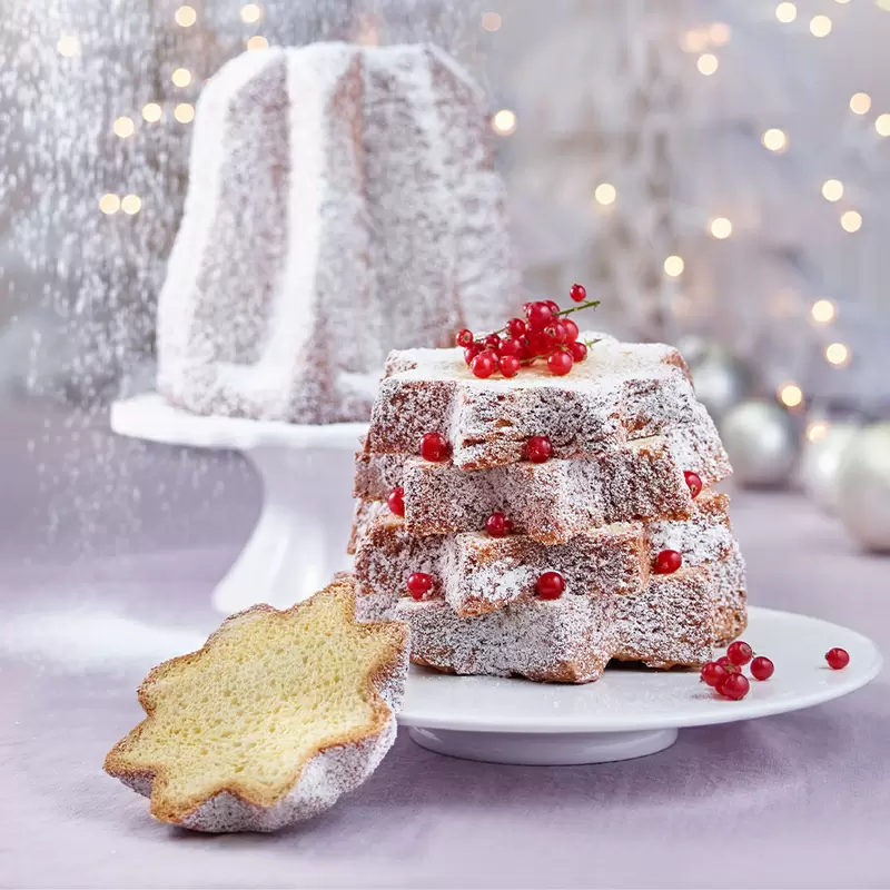 Sind Sie bereit für eine köstliche italienische Weihnachtsspezialität? Probieren Sie unseren Pandoro, einen süßen, von Hand hergestellten Hefekuchen, der aus einer mit Milch, Zucker, Hefe, Mehl, Vanille, Orange, Kardamom, Ceylon-Zimt, Salz, Butter und Eiern hergestellt wird. Dieser klassische italienische Kuchen wird in der Form eines Sterns gebacken und ist der perfekte Begleiter für Ihre Weihnachtsfeier oder für einen besonderen Anlass. Der Pandoro ist besonders bekannt für seinen feinen, leichten Teig und seine köstliche Butter- und Vanillenote. Bestreut mit Puderzucker ist er eine Delikatesse, die jeden Gaumen begeistern wird. Ob zum Frühstück, zum Nachtisch oder einfach nur zum Naschen, unser Pandoro ist die perfekte Wahl für jeden Anlass und jeden Geschmack. Geben Sie Ihrem Gaumen etwas Besonderes und probieren Sie jetzt unseren Pandoro! | ZUM REZEPT – HIER KLICKEN |