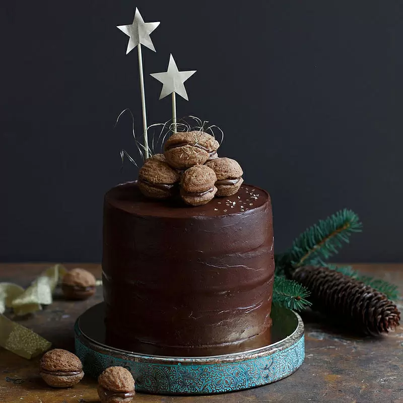 Nougat-Torte mit Zartbitterschokoladen-Ganache und Walnusskeksen