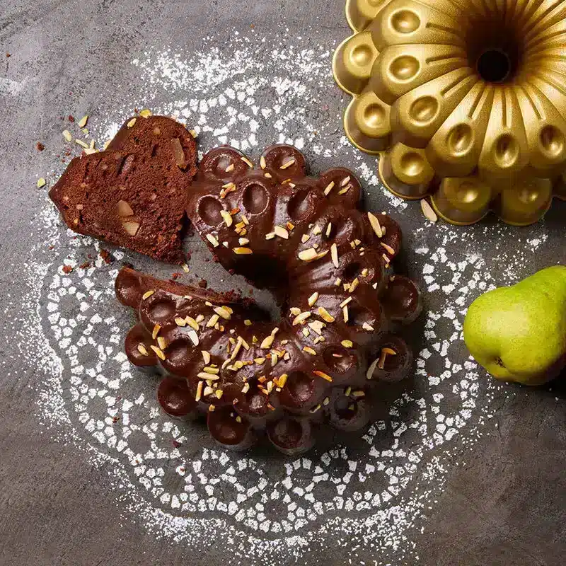 Schokoladen-Birnen-Kuchen Backform Dahlienblüte