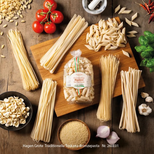 Weitere exklusive Pasta-Spezialitäten und hocharomatische Saucen finden Sie im Hagen Grote Onlineshop. Noch mehr zum Thema Pasta erfahren Sie in unseren Magazinartikeln Nudeln selbst machen: So gelingt frische Pasta perfekt und Pizza, Pasta & Risotto – das Geheimnis der italienischen Küche.