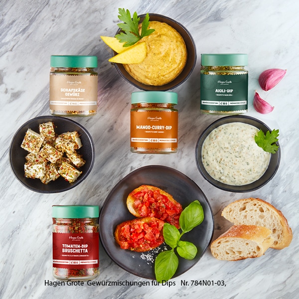 Eine weitere kreative Idee, womit Sie Ihren selbstgemachten, kulinarischen Adventkalender bestücken können, sind besondere Gewürze. Unsere feinen Gewürzmischungen in den Sorten Aioli, Curry-Mango, Schafskäse und Bruschetta bestehen aus hochwertigen Kräutern und besten Zutaten. Mit etwas heißem Wasser und anschließend mit Crème Fraîche, griechischem Joghurt oder Mayonnaise gelingen mit ihnen köstlich-cremige Dips. Auch Suppen, Saucen, Dressings und Vinaigrettes sowie Fisch-, Pasta- und Gemüsegerichten verleihen sie einen hervorragenden Geschmack.