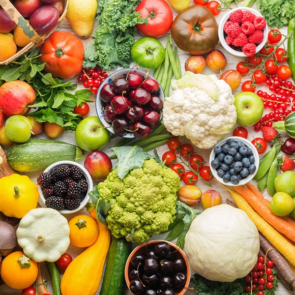 Ob knackiges Gemüse, leichte Salate oder süßes Obst: Hier dürfen Sie sich sattessen. Der hohe Ballaststoff-Anteil der frischen Kost sowie zahlreiche Vitamine, Zink, Magnesium und Mikronährstoffe wirken sich äußerst positiv auf Gesundheit und Wohlbefinden aus.