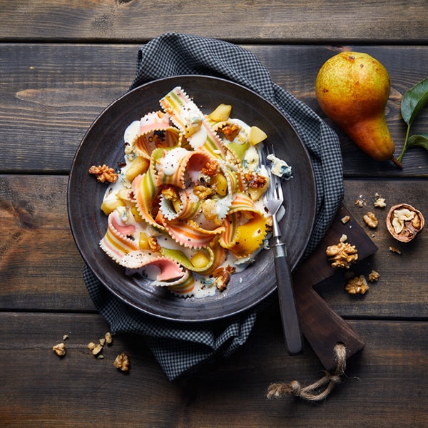 Mit unterschiedlichen Zutaten lässt sich Nudelteig bunt einfärben. Nudelteige aus hellem Mehl nehmen die Farben am besten auf. Grüne Nudeln entstehen durch etwas fein pürierten Spinat oder Basilikum. Pink erstrahlen sie, wenn man das Wasser im eifreien Teig durch Rote Bete Saft ersetzt. Tomatenmark färbt Pasta rot ein, Safran gelb. Einige Esslöffel Kürbispüree sorgen für orange Nudeln, mit Tintenfischtinte wird die Pasta schwarz. Für eine hübsche Optik sorgen außerdem gehackte Kräuter.