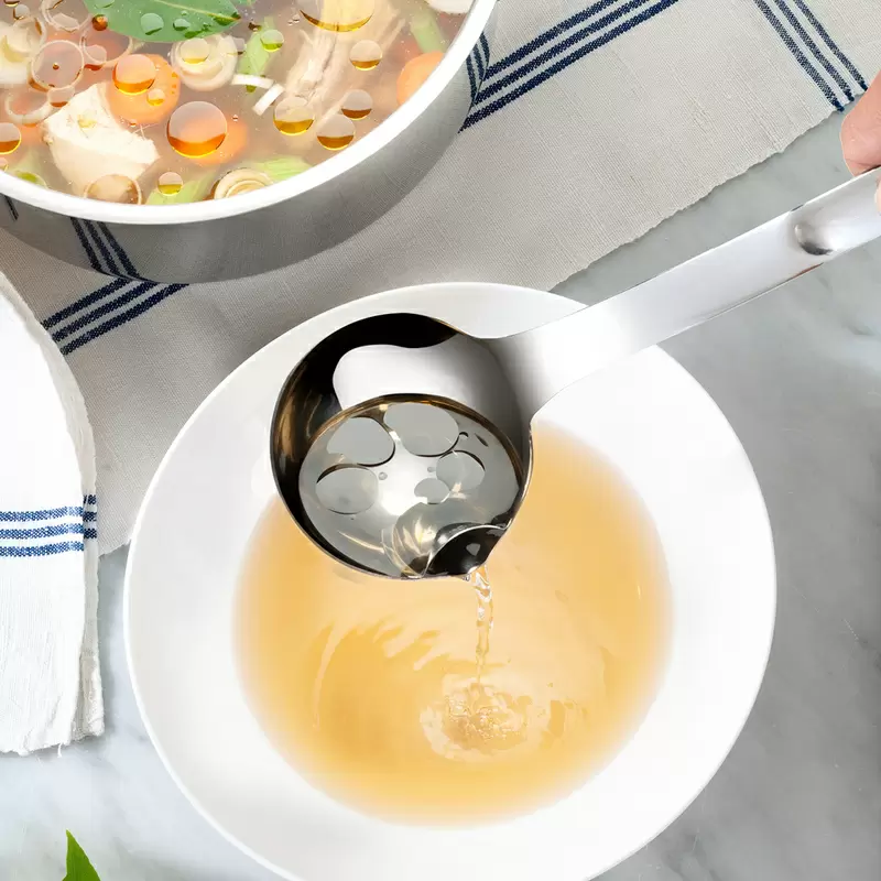 Fettabschöpfer: Schnell & sicher fettfreie Saucen, Suppen, Fonds Aufgrund ihres Spezial-Ausgießers eignet sich diese Fett-Trennkelle optimal zum Fett abschöpfen. Die Fettschicht setzt sich im oberen Teil der Kelle ab und wird dort durch einen oberen Trennsteg mit unterer Öffnung zurückgehalten.
