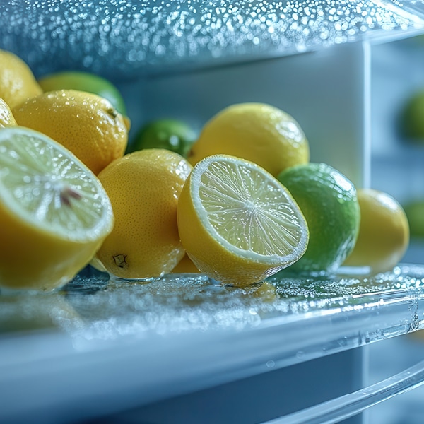 Angeschnittene Zitronen sollten in jedem Fall in einer geschlossenen Dose im Kühlschrank aufbewahrt werden, um das Austrocknen und die Aufnahme fremder Gerüche zu verhindern. Tipp: Zitronen lassen sich wunderbar einfrieren – sowohl als Saft in Eiswürfelbehältern oder in Scheiben, die Sie direkt aus dem Eis Getränken beigeben können.