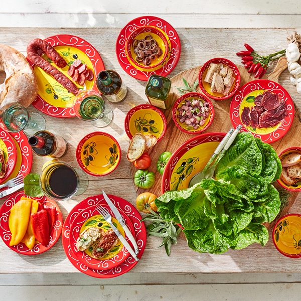 Tapaschale: Mediterranes Oliven-Geschirr mit italienischem Dekor Seit jeher ist der Olivenbaum ein besonderes Symbol für die kulinarische Welt des Mittelmeerraumes.