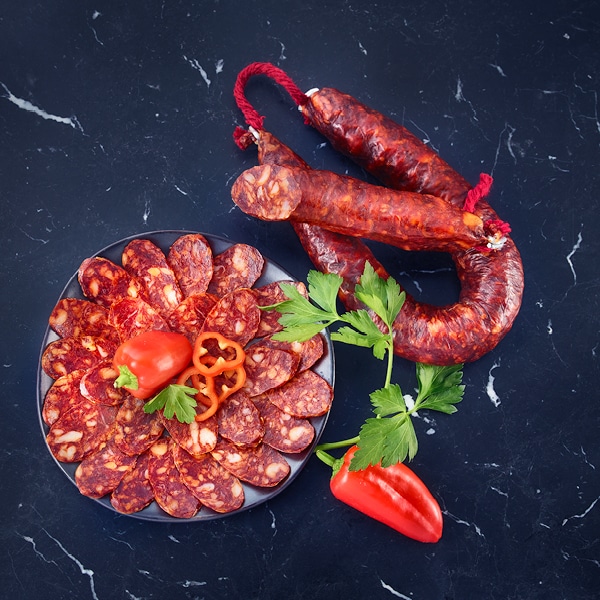 Chorizo gehört zu den wichtigsten spanischen Wurstsorten und darf – verarbeitet oder pur – auf keiner Tapas-Platte fehlen. Unsere Duroc-Edel-Chorizo, die in den Höhenlagen der Sierra de Alcarama reift, ist ein echtes Geschmackserlebnis.
