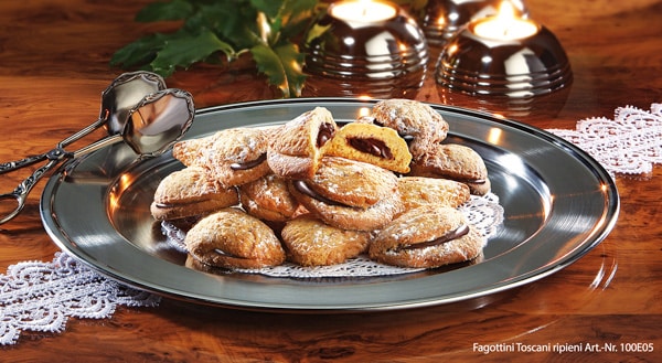Diese kleinen gefüllten Kekse sind eine Spezialität aus der Toscana mit variierenden  süßen Füllungen. Enzo Squarcia, bekannt als bester Feinbäcker im toskanischen San Gimignano, backt seine Fagottini nach einem geheimen Familienrezept von 1936, das auch wir nicht in Erfahrung bringen konnten. Aber so viel wissen wir. In Handarbeit verfeinert er Mürbeteig mit toskanischen Mandeln als Umhüllung Aus fein gemahlenen Piemonteser Haselnüssen, edler Schokolade. Die Füllung besteht aus cremiger Gianduia mit einem Hauch Vanille. Hier finden Sie die feinen toskanischen Fagottini bei uns im Shop.