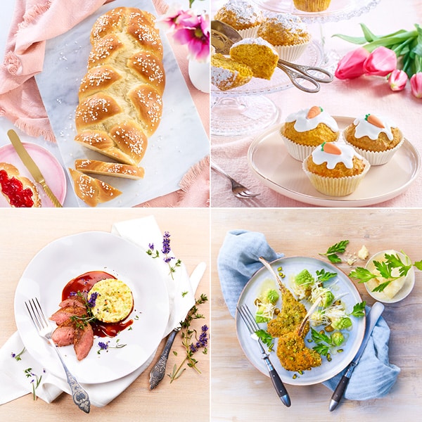 Auch festliche Fleischgerichte wie Braten und Lamm- sowie Kaninchengerichte sind ein fester Bestandteil des klassischen Osterfests. Ob Lammrücken auf Spitzkohlpüree mit Lamm-Lavendelsauce, Rosa Lammkeule mit Pilzragout und Kartoffelwaffeln oder Lammkotelette mit Pistazienkruste «Costolette di agnello al pistacchio e romanico» – mit aromatischen Lamm-Rezepten aus der Hagen Grote Küche begeistern Sie Ihre Gäste. Wer Kaninchen bevorzugt, setzt auf Kaninchenspieße mit Gemüsenudeln und Senfsauce oder gefüllten Kaninchenrücken auf Morchel-Spargel-Ragout.