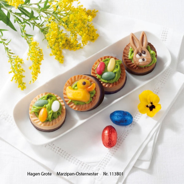 Ein besonderer Genuss für Marzipan-Liebhaber sind handgefertigte Osternester aus Königsberger Marzipan. Das hocharomatische Königsberger Marzipan entsteht nach einem hauseigenen Rezept. Daraus formen unsere erfahrenen Patissiers attraktive Osternester. Liebevoll von Hand mit frühlingshaften Motiven verziert ein exquisiter Genuss.