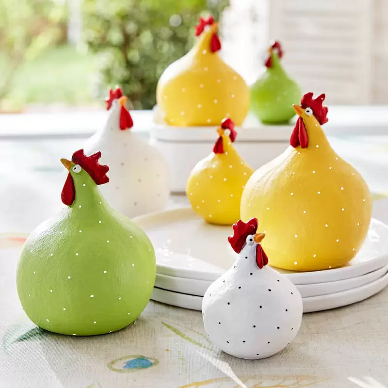 Aus dem weltbekannten Keramikatelier von Heidi Caillard, Absolventin der renommierten École de Céramique, Lausanne, stammen unsere handgefertigten Keramik-Hennen. Sorgfältig in Form gegossen, farbig grundiert und von Hand bemalt fertigt die Designerin die handsignierten Unikate. Eine hochwertige, transparente Emailleglasur, nahe 1000 °C gebrannt, schützt die robuste Keramik. So verschönern die dekorativen Hennen je nach Wunsch Innen- oder Außenbereich.