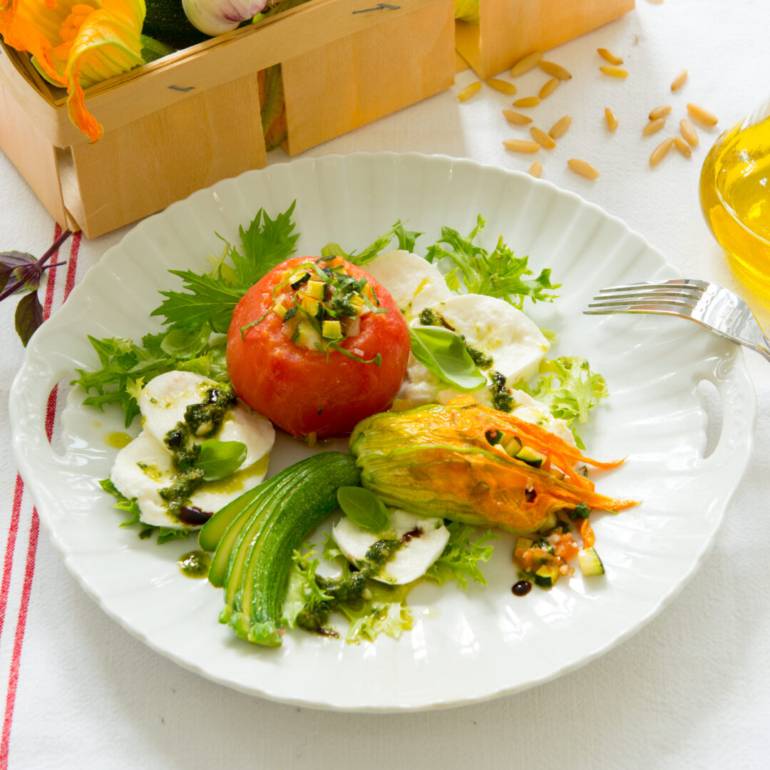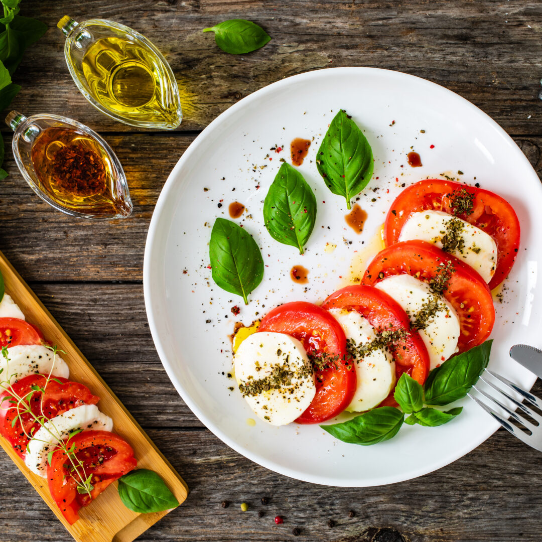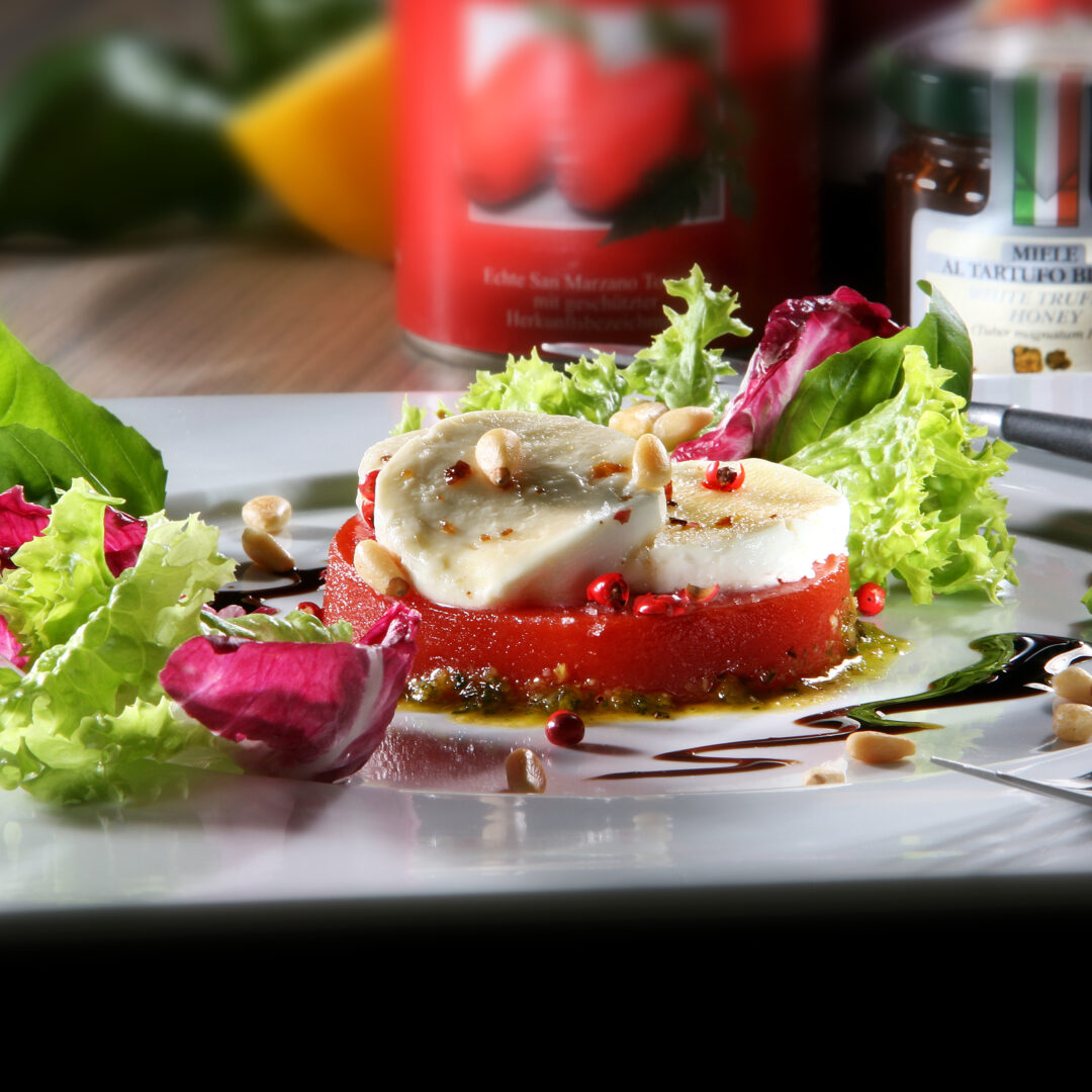 Bei „Tomaten“ und „Salat“ kommt den meisten Genießern sofort die klassische Caprese in den Sinn. Für den feinen Vorspeisensalat der italienischen Küche werden rohe Tomaten- und Mozzarellascheiben gesalzen, mit hochwertigem Olivenöl beträufelt und mit frischem Basilikum garniert.