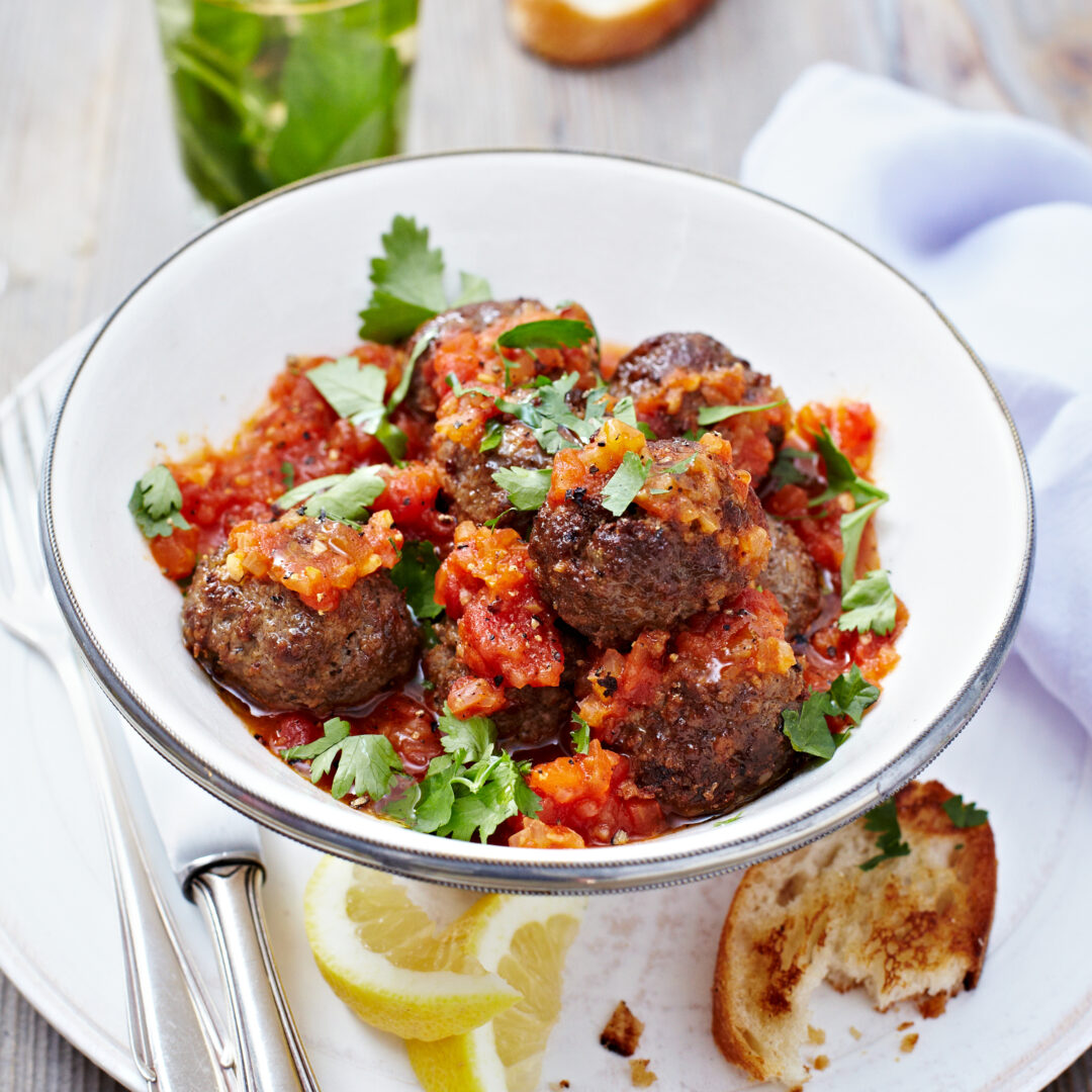 Auch in Kombination mit Fleisch machen Tomaten stets eine gute Figur. Unsere Empfehlungen aus der Hagen Grote Küche: Saftiges Rinderfilet mit Lavendelblüten-Schafskäse-Kruste, Ofentomaten und Lavendel-Emulsion und Arabische Salzzitronen-Lammfleischbällchen in Tomatensauce.