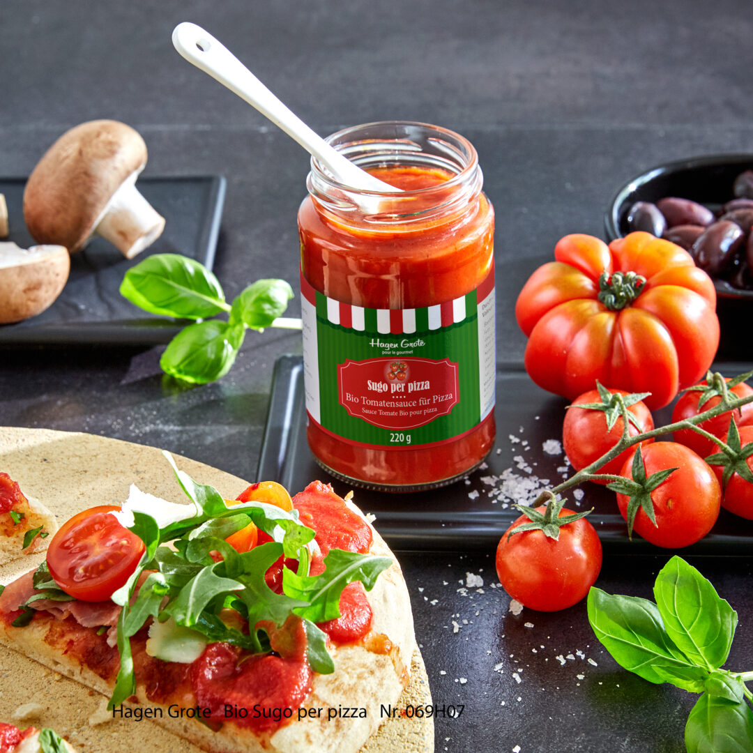 Was wären Pizza oder Pinsa Romana, eine köstliche Mischung zwischen Pizza und Focaccia auf Basis von Sauerteig, ohne ein wohlschmeckendes Tomatensugo? Unser original italienisches Sugo per Pizza gilt als beste Pizza-Tomatensauce. Beste Tomaten aus biologischem Anbau, hochwertiges Olivenöl und feine Gewürze wie Oregano und Basilikum sorgen für seinen einzigartig guten Geschmack.