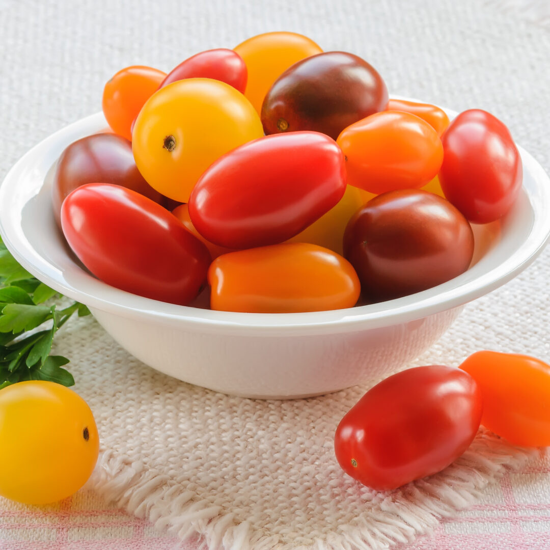 Aufgrund ihres süßlichen Aromas hat die Cocktailtomate viele Liebhaber. Die kleine Frucht mit runder, länglicher oder birnenartiger Form eignet sie sich perfekt für den Direktverzehr. Cocktailtomaten können rot, orange oder gelb gefärbt sein und bereichern Salate ebenso wie warme Speisen.