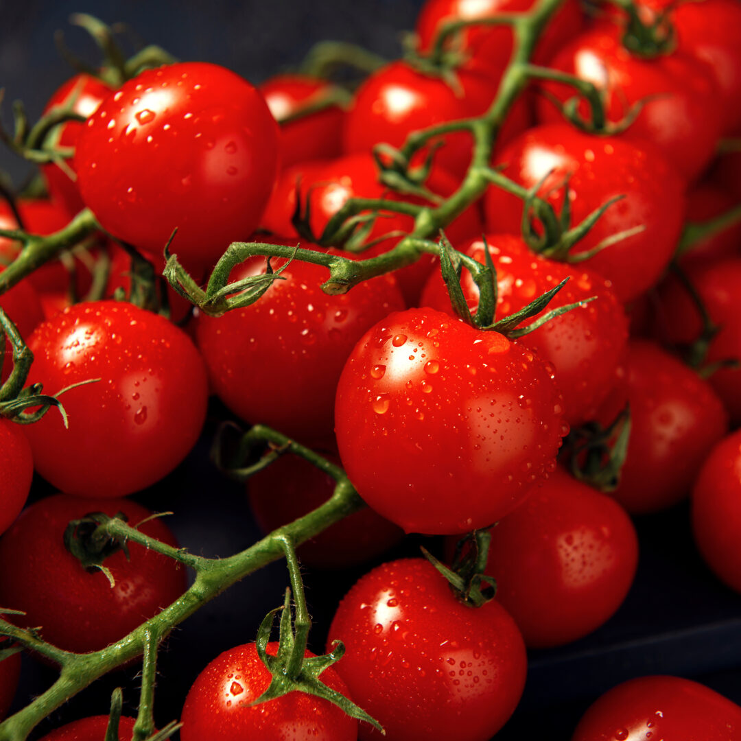 Cherry- oder Kirschtomaten erkennt man daran, dass sie noch an der Rispe hängend zum Verkauf angeboten werden. Sie sind länglich, rund oder oval geformt, angenehm süß und verfügen über ein ausgeprägtes Tomatenaroma. Auch diese Sorte wird meist pur genossen oder findet in Vorspeisen und Salaten Verwendung