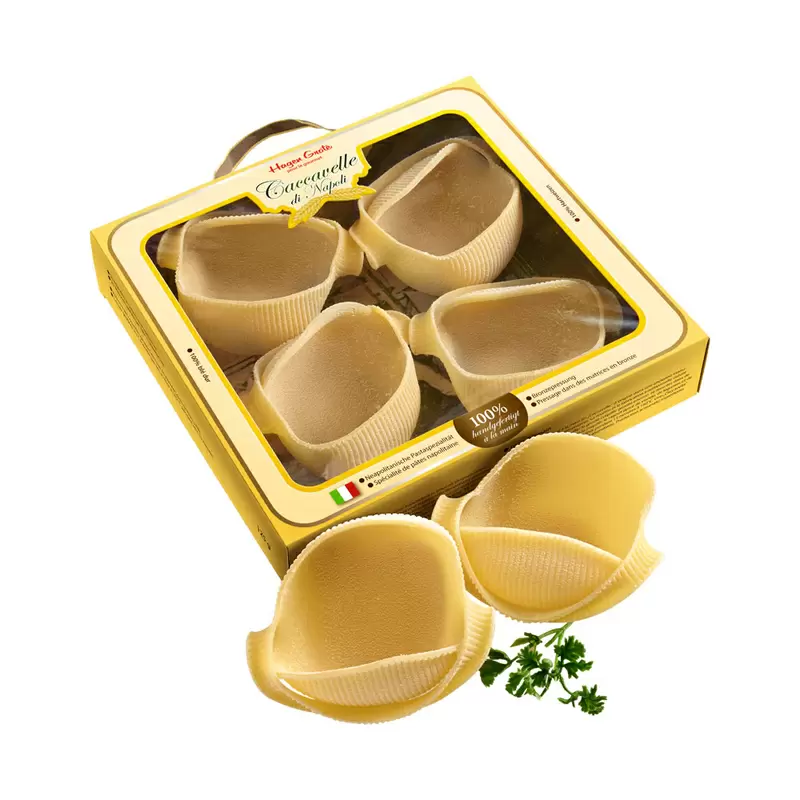 Original «Caccavelle» lassen sich nur in reiner Handarbeit mit Bronzepressung fertigen. Rezept und kunstvolle Herstellungsweise werden in der spezialisierten Pastamanufaktur seit 200 Jahren vom Vater an den Sohn weitergegeben.