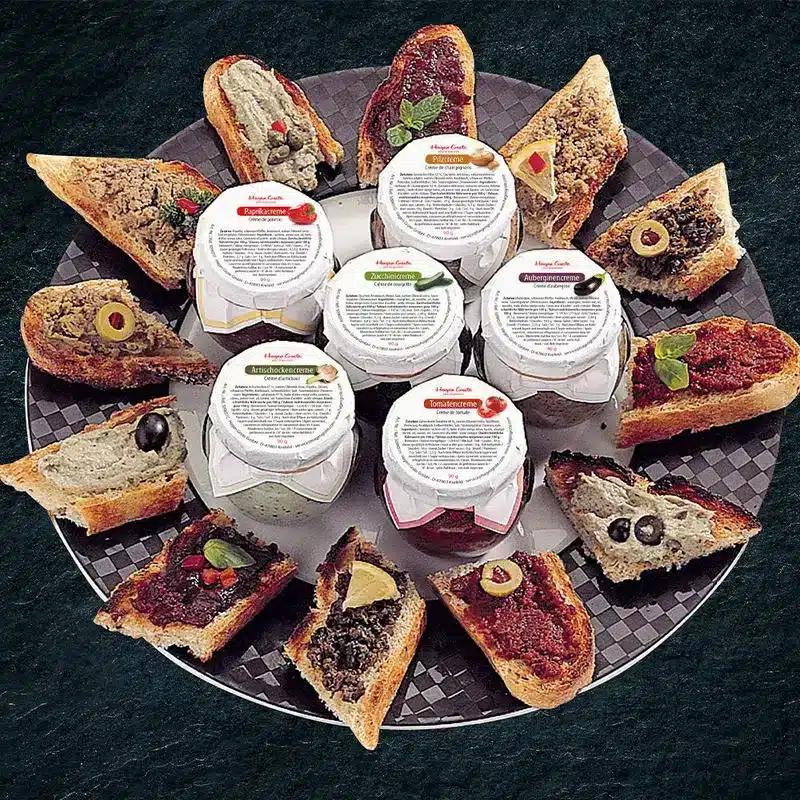 Im tiefen Süden Italiens, an der Ferse des italienischen Stiefels, gedeihen die geschmackvollen mediterranen Gemüse für unsere CrostiniCremes. Geerntet werden sie vollreif und nicht wie üblich halbreif für den nordeuropäischen Markt.