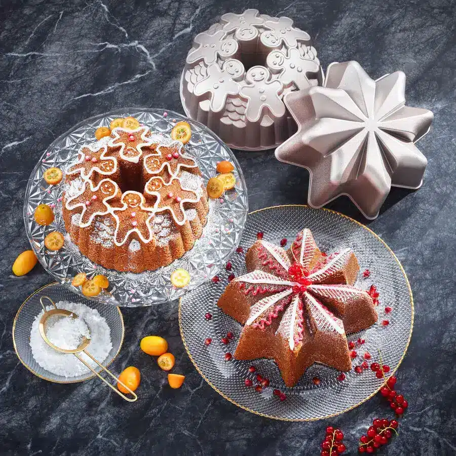 Dank detailreich ausgearbeiteter Motive gelingen damit dekorative Rührkuchen für die Weihnachtszeit. Besonders schön verziert mit Puderzucker oder Zuckerguss.