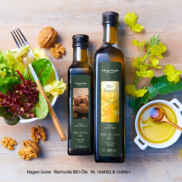 Das hochwertige Öl übertrifft andere Öle durch überdurchschnittliche Anteile ungesättigter Fettsäuren, Omega-3-Fettsäuren, reichlich Vitamin E (wichtig gegen oxidativen Stress). Es ist mild-fruchtig, ernährungsphysiologisch und kulinarisch überaus wertvolle und sollte nur bis unter 170 °C zum Braten und Backen erhitzt werden.