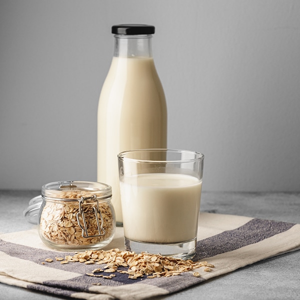Die wohl derzeit populärste Milchalternative ist Hafermilch. Auch aus anderen Getreidesorten, wie z. B. Dinkel, werden Pflanzenalternativen hergestellt, die in ihren Eigenschaften der Hafermilch ähneln. Neben der Verwendung in Kaffee oder Müsli eignet sie sich hervorragend auch zum Backen. Hafermilch ist leicht süßlich und von wässriger bis cremiger Konsistenz. Beides ist jedoch stark von der Sorte abhängig. Insbesondere günstige Sorten sind oftmals säuerlich und eher wässrig – hier lohnt es sich, verschiedene Marken auszuprobieren, bis Sie Ihren Favoriten gefunden haben.