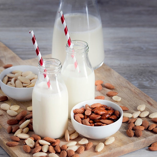Nussmilch, wie etwa Haselnuss- oder Cashewdrinks, und Mandelmilch bestechen durch ihren angenehm milden, leicht nussigen Geschmack. Süße entsteht bei Nuss- und Mandelmilch nur durch Zuckerzusatz. Angeboten werden sowohl gesüßte als auch ungesüßte Sorten. Zum Backen lassen sich diese Pflanzendrinks genauso einsetzen wie Getreide- und Sojamilch. Besonders gut harmoniert sie in Nuss-, Schokoladen- sowie in Rührkuchen.