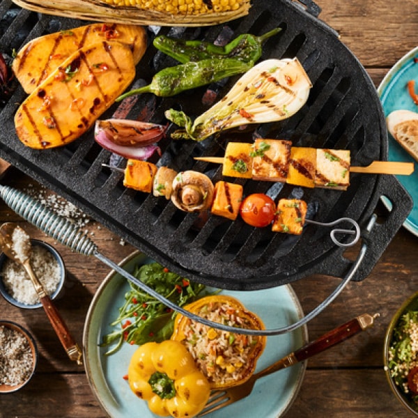Sensibles Grillgut wie Gemüse, Pilze oder Tofu garen sicher, sauber und ohne anzubrennen in unserer praktischen Grillschale mit Isolier-Serviertablett. Durch die extra hohen Ränder fällt beim Wenden zudem nichts hinaus. Perfekt für kleinere Mengen sind auch unsere Keramik-Grillpfännchen mit passendem Holz-Serviertablett, die sich wunderbar auch zum stilvollen Servieren eignen. Jegliches Anbrennen unterbinden hier die erhöhten Bodenstege, während der abnehmbare Bambus-Griff beim Transport vom Grill zum Tisch für die benötigte Sicherheit sorgt. Außerdem optimal für veganes Grillgut sind unsere runden und eckigen Grill-Backformen aus dekorativem Terracotta, die zusätzlich für den Backofen (z. B. für Aufläufe) genutzt werden können.