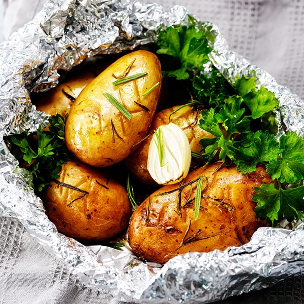 Eine hervorragende Beilage zum Grillen sind Kartoffeln. Klassische, in Alufolie indirekt unter der geschlossenen Haube des Grills gegarte Folienkartoffeln benötigen mit etwa 50 Minuten sehr viel Zeit. Deutlich schneller geht es, wenn man die beliebten Knollen vorgekocht oder roh in Scheiben geschnitten auf dem Grill zubereitet (ca. 10 Minuten Grillzeit). Auch mariniert schmecken Kartoffeln sehr gut.