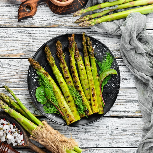 Grillen ist eine unkonventionellere, jedoch äußerst schmackhafte Zubereitungsart für Spargel. Von grünem Spargel dafür die Enden entfernen, weißen Spargel zusätzlich schälen. Das Stangengemüse mit Olivenöl beträufeln und je nach Dicke etwa 6-10 Minuten garen und mit etwa Salz und Pfeffer servieren. Tipp: Für eine fruchtige Note einen Spritzer frischen Orangensaft zum Olivenöl geben.