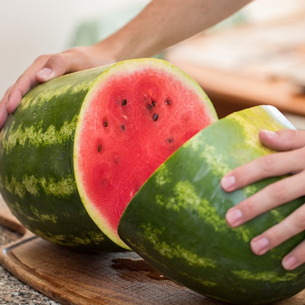 Die erfrischende Wassermelone entwickelt durch Hitzeeinwirkung ein völlig neues Aroma. Am besten grillen lässt sie sich in 2 cm dicke, in handliche Viertel geschnittene Scheiben. Wer mag, verfeinert diese mit ein wenig Olivenöl. Serviert mit frischen Kräutern, wie etwas Minze oder Basilikum, oder auf einem Bett aus Rucola, wird ihr köstlicher Geschmack perfekt unterstrichen. Entdecken Sie auch unser passendes Hagen Grote Rezept: Gegrillte Wassermelone mit Couscous und Granatapfel. Mit einer Kugel veganem Eis, weiteren frischen Früchten und beträufelt mit etwas Ahornsirup wird aus gegrillter Wassermelone ein erfrischendes Dessert.