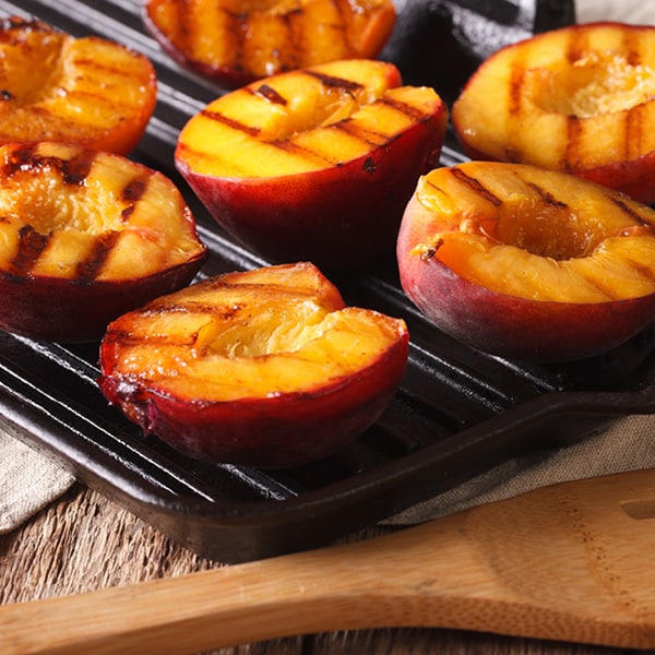 Pfirsiche und Nektarinen lassen sich am besten halbiert und mit der Schnittfläche nach unten auf dem Grill zubereiten. Am besten gelingen die saftigen Früchte, wenn man sie etwa 2 Minuten direkt und anschließend für weitere 10 Minuten indirekt unter der geschlossenen Grillhabe gart. Herrlich schmecken sie etwa serviert mit etwas Ahornsirup, Balsamico-Creme, einer Prise Zimt sowie je einem Zweig frischem Thymian. Perfekt auch als Topping auf grünem Salat. Beträufelt mit Ahornsirup, etwas Knuspermüsli als Topping und einer Kugel veganem Vanilleeis wird daraus ein köstliches Dessert.