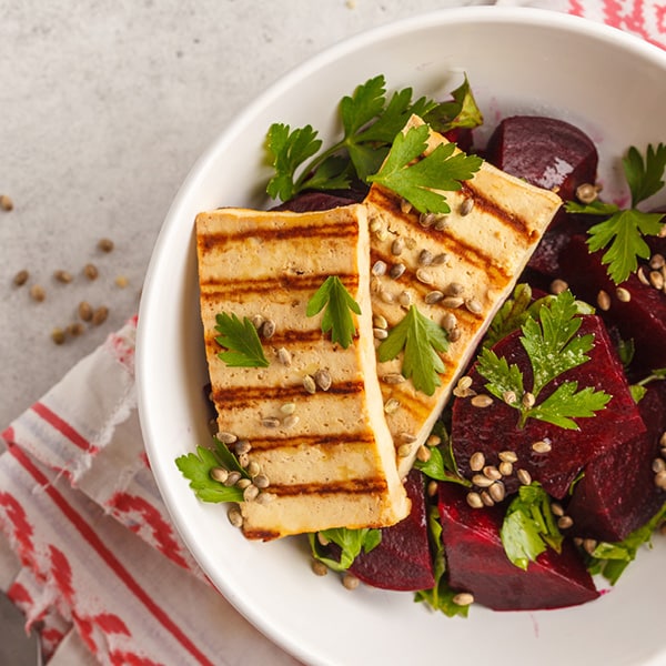 Tofu stammt aus der asiatischen Küche, wo er bereits seit Jahrhunderten ein fester Bestanteil ist. Er wird aus Sojabohnen gewonnen und kann beim Grillen vielseitig verwendet werden: Zum Beispiel auf Spießchen, im Ganzen gegart oder weiterverarbeitet zu selbstgemachten Burger-Patties.