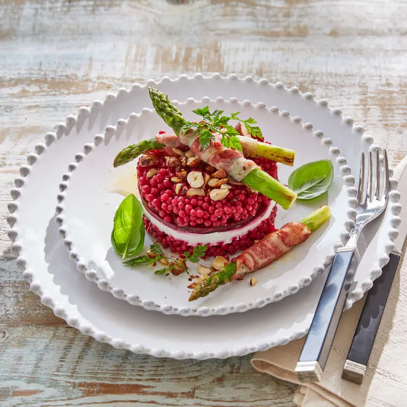 Aber nicht nur als Beigabe, sondern auch als Hauptzutat machen Hülsenfrüchte eine hervorragende Figur – so etwa in unserem lauwarmen Linsen-Specksalat mit Cassis-Fruchtpüree-Vinaigrette.