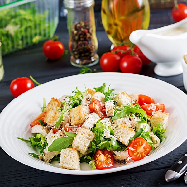 Auch cremige Salatdressings, etwa auf Basis von Naturjoghurt, Mayonnaise, Creme Fraîche, saurer Sahne oder eine Mischung dieser Zutaten verleihen winterlichen Salaten Geschmack. Zum Verdünnen der Hauptzutat eignen sich etwa Milch, Buttermilch, Brühe oder Zitronensaft. Anders als bei der Vinaigrette gibt es hier jedoch keine genauen Mengenangaben – entweder nutzt man ein Rezept oder gibt so lange Flüssigkeit hinzu, bis die Konsistenz stimmt. Ein besonders cremiges Dressing für Ihre Salatkreationen ist auch unsere feine Champignon-Salatsauce.
