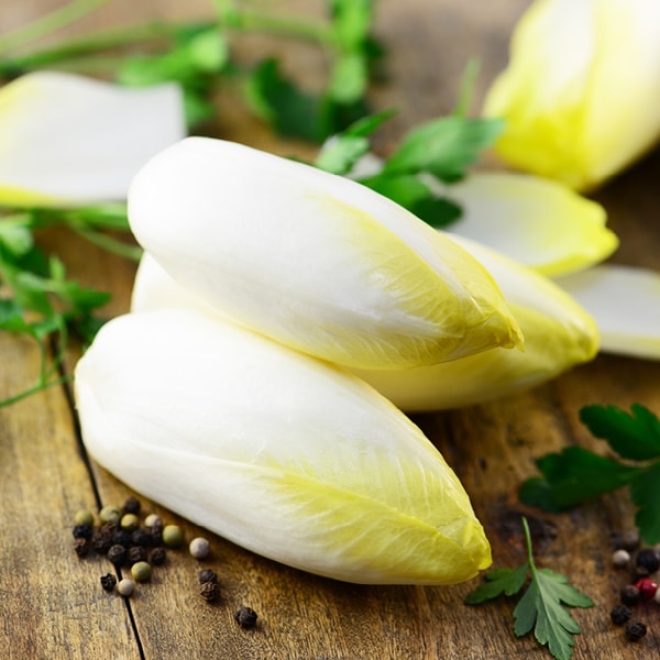 Wie Endiviensalat stammt auch Chicorée aus dem Mittelmeerraum, gedeiht jedoch heute weltweit in gemäßigten Klimazonen. Er gehört zur Familie der Zichorien. Sein Erkennungsmerkmal ist sein ovaler, langgezogener Kopf. Die Sorte verfügt über feste Blätter, die sich nicht nur zu Salaten verarbeiten lassen, sondern auch als Gemüse zubereitet und gedünstet, gebraten oder überbacken werden können. Der äußerst bittere Strunk solle jedoch vor der weiteren Zubereitung herausgeschnitten werden.