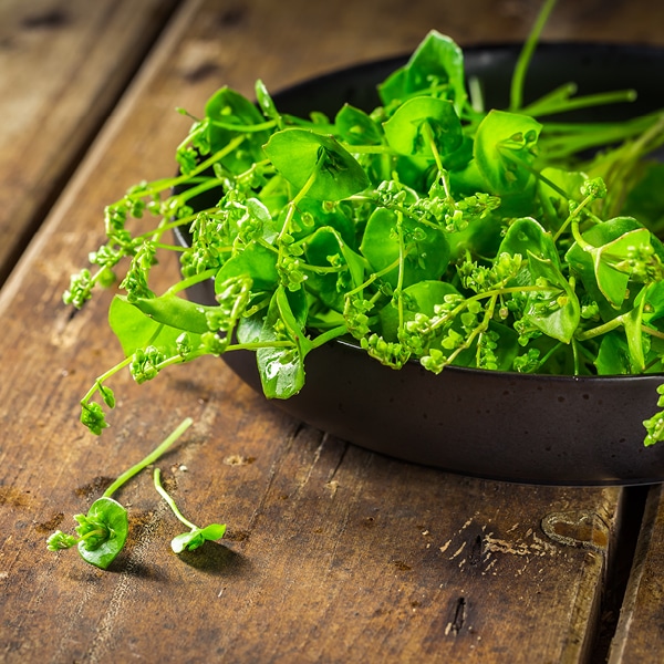 Etwas weniger bekannt ist hierzulande Winterportulak, der auch Postelein, Winterpostelein oder Tellerkraut genannt wird. Reich an Vitamin C, Magnesium, Calcium und Eisen liefert er in der kalten Jahreszeit ebenfalls viele wichtige Vitamine und Mineralstoffe. Roh als Salat können neben seinen jungen Blättern auch Stängel und sogar Blüten verzehrt werden. Sie sind angenehm mild und ähneln geschmacklich dem Feldsalat. Ältere Blätter schmecken für einige Minuten blanchiert fast wie Spinat.