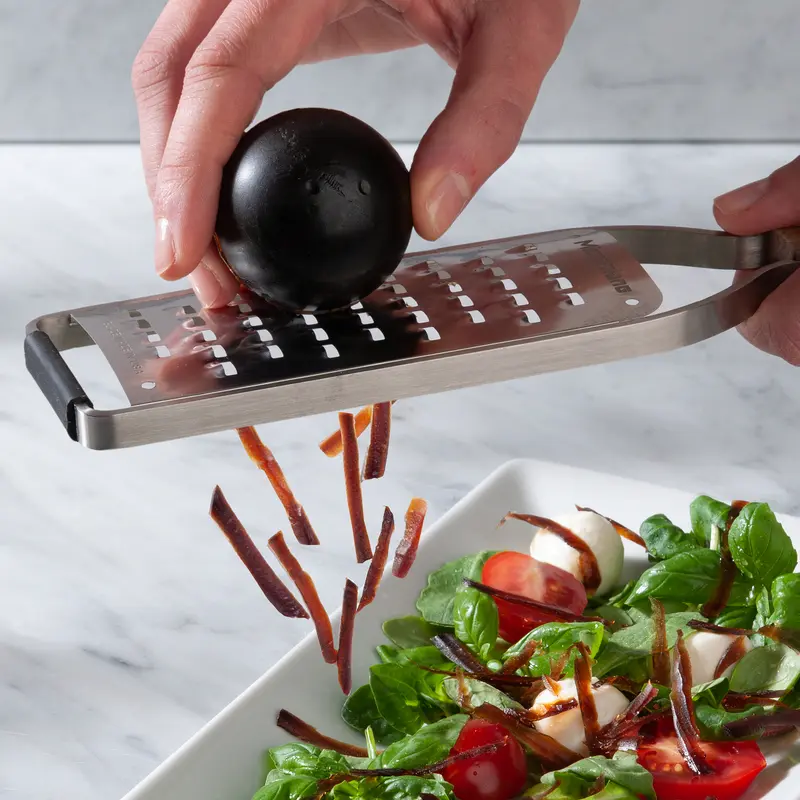 Edlen Aceto Balsamico di Modena I.G.P. lässt Hagen Grote in einer italienischen Manufaktur durch Feuchtigkeitsentzug zur Kugel verdichten. Fein geraspelt würzt diese Essig-Delikatesse klassischen Caprese-Tomatensalat mit Mozzarella und Basilikum.