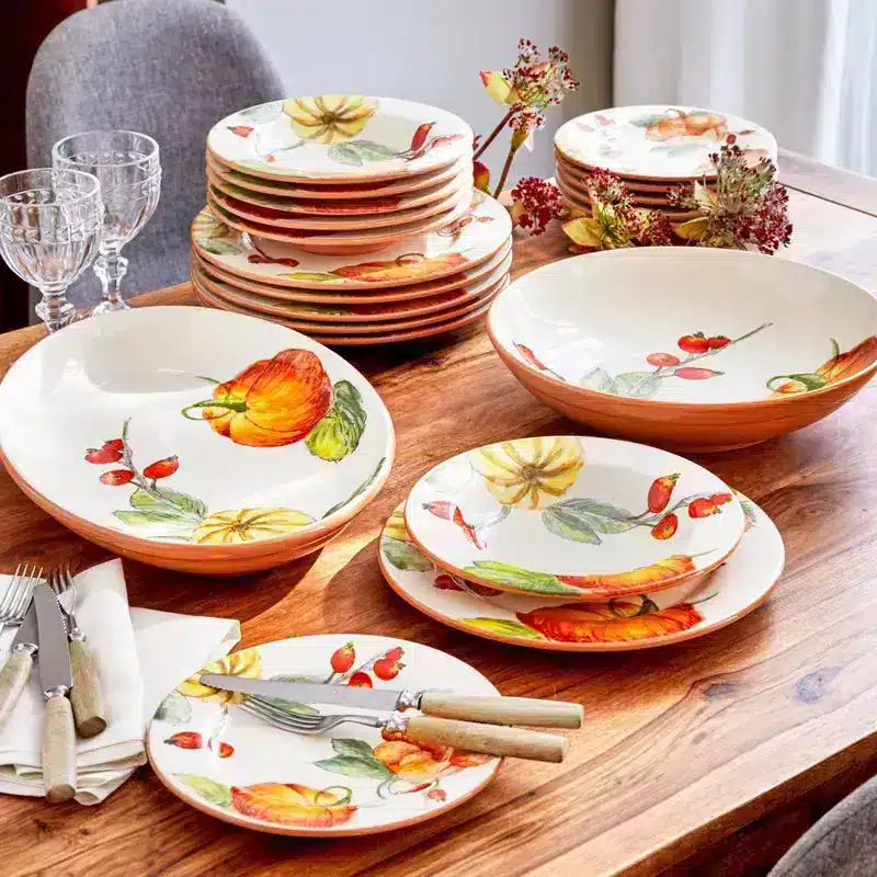 Ovale Platte: Hochwertige italienische Keramik mit herbstlichen Kürbismotiven