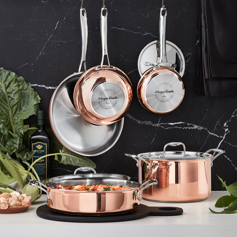5-Lagen Hagen Grote Kupfertöpfe: Stielkasserolle mit Deckel
