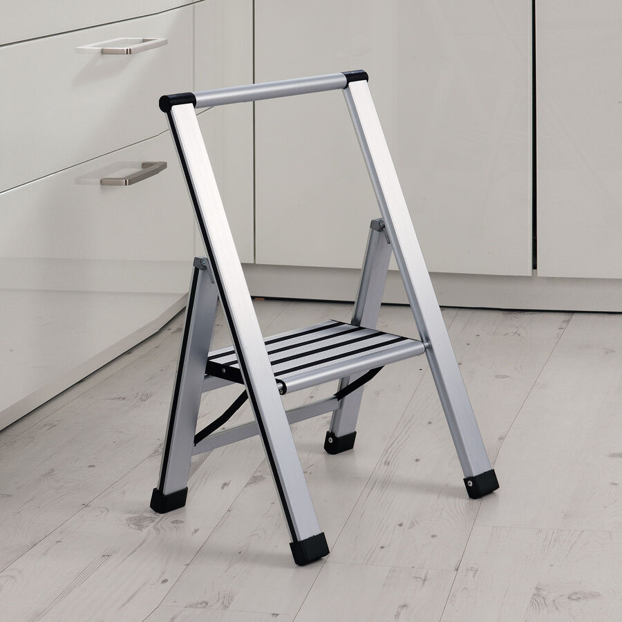 Standfeste 1-Stufen-Sicherheitsleiter - ultraflach klappbar, Klapptritt, Trittleiter, Stufenleiter