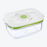 Die mittlere Größe von 1450 ml ist ideal für fertige Speisen, Obst, Gemüse, Fisch oder Fleisch. Einfach den Dosendeckel schließen, Elektropumpe aufsetzen und den Knopf drücken. Schon entzieht das System dem Doseninhalt die Luft. Ein Leuchtsignal vermeldet den Erfolg: Oxidation wird verhindert, Lebensmittel halten durch das Vakuumieren bis zu 5 x länger frisch, Marinaden ziehen in Minuten statt Stunden ein. Elektropumpe im separat bestellbaren Vakuumier-Set enthalten.