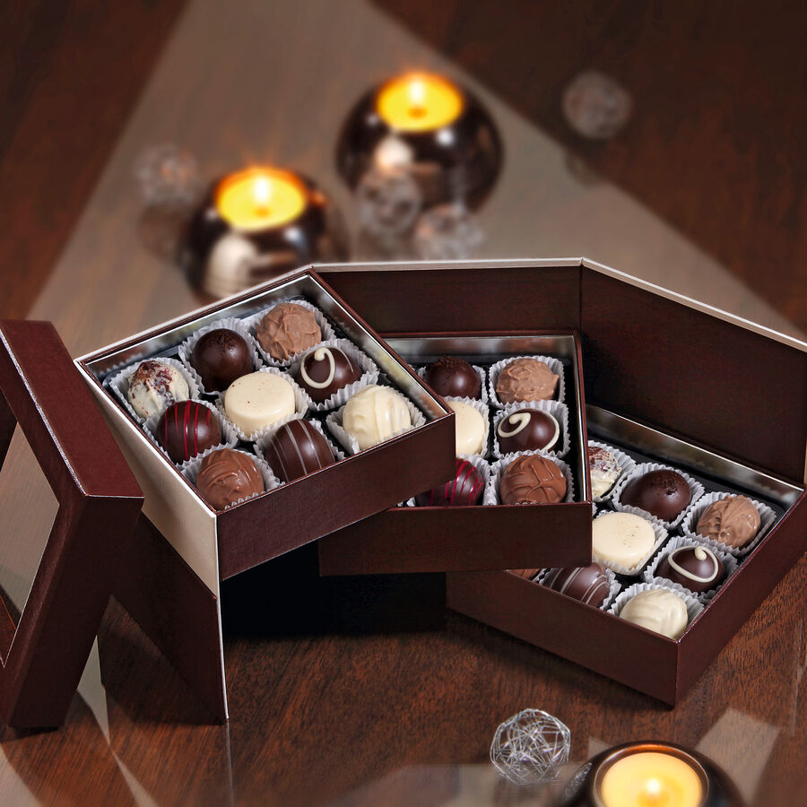 Zucker, Kakaobutter, Kakaomasse, Vollmilchpulver, Butterreinfett, Schlagsahne, Glukosesirup, Süßungsmittel: Sorbit; Haselnüsse, Williams-Birnen-Geist, Marc de Champagne, Obstbrand, Moccalikör, Calvados, Weinbrand, Kakaopulver, Edelkirschlikör, Emulgatoren: Sojalecithin, Sonnenblumenlecithine; gemahlener Röstkaffee, Haselnussmark, Kirschwasser, Obstwasser, Eierlikör, natürliche Aromen, Apfelsaftkonzentrat, Sauerkirschsaftkonzentrat, Aromen, pflanzliches Fett teilweise gehärtet (Palm), Feuchthaltemittel: Invertase; schwarze Johannisbeeren, pflanzliche Öle (vollständig raffiniertes Sojaöl, Palm), Maisstärke, Himbeeren, färbendes Lebensmittel (Rote-Bete-Saftkonzentrat). Kann Spuren von anderen Schalenfrüchten enthalten.