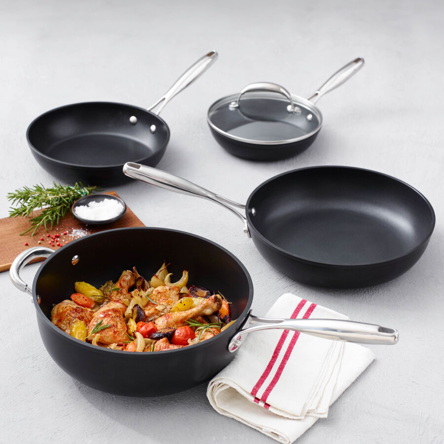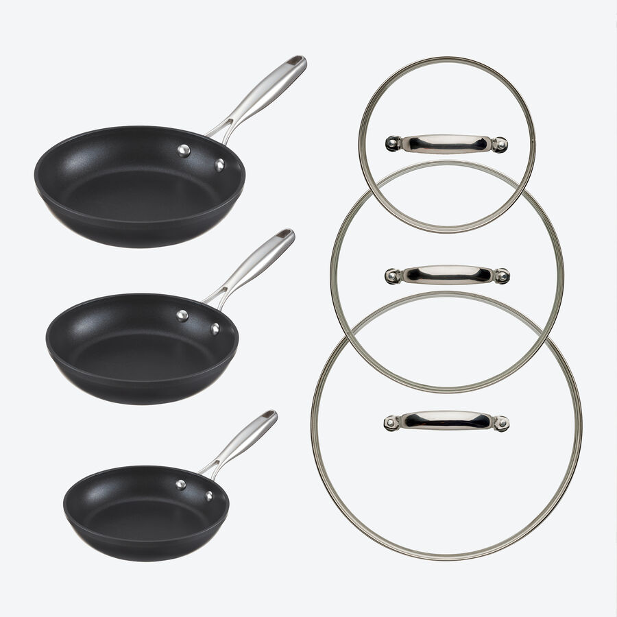 3-tlg. Set: Professionelle, hartanodisierte Hagen Grote Hochraumpfannen mit Deckel