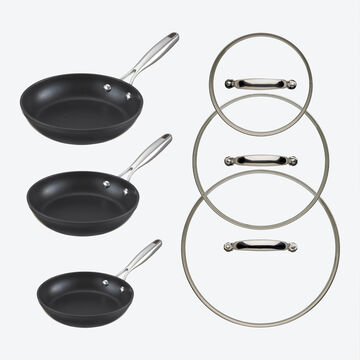 Profi-Pfannen 3 Set, Hartglasdeckel, (Ø 20, 24, 28 cm)